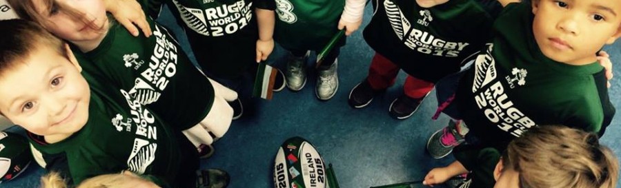 The children and staff at Giraffe Leopardstown host a rugby day in honour and support of the Irish Rugby team. Our Giraffe Leopardstown pre-schoolers had so much fun showing their support by preparing rugby related artwork and learning ‘Irelands Call’ assisted by their teachers, Ciara O’Reilly and Ivonne Gonzalez. Our deputy manager, Roisin Byrne, accompanied … Continue reading 13 preschoolers | 2 teachers | 2 rugby coaches|1 bodhrán player and a whole lot of fun