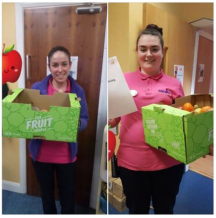 All of our staff teams received Healthy Fruit baskets this week as part of a Eat Well, Live Well campaign. The team also encouraged fruit tasting and healthy Snack choices for the children, giving them the option to cut up fruit, stir in berries and talk about the goodness of fruit during their snack time.