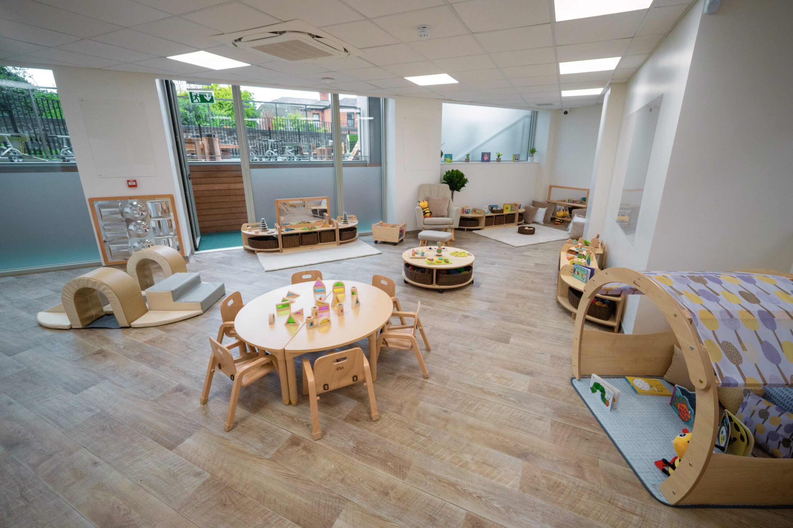 The crèche will have spacious rooms, all brightly decorated and arranged to offer each child the chance to explore and investigate their environment, to enable them to learn the skills that they need to develop to become confident, happy learners offering a broad curriculum underpinned by Aistear and Siolta frameworks with a range of opportunities for children to explore and learn through play. All the rooms have easy access to our lovely secure outdoor play area for the children to enjoy all year round